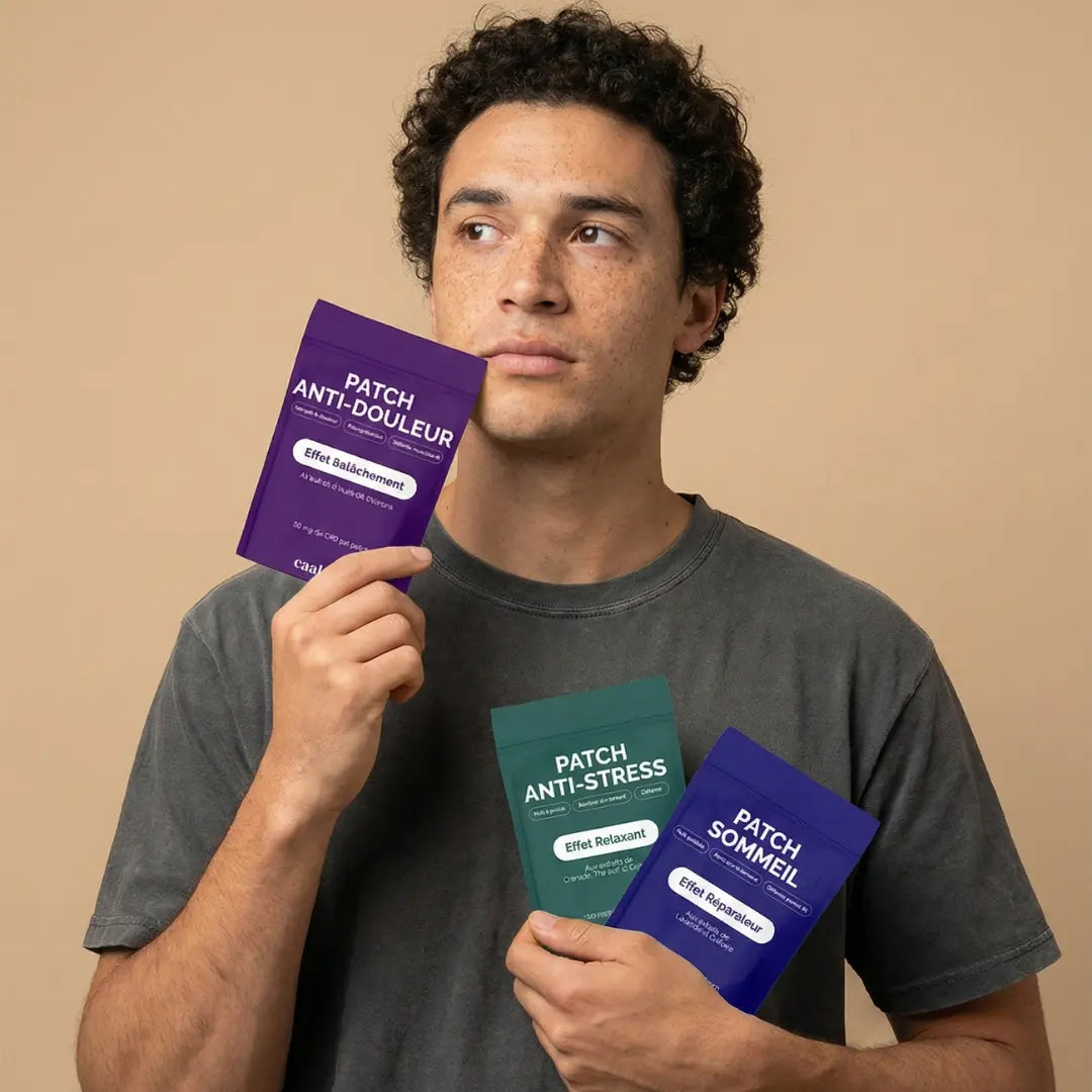 Pas besoin de cumuler. Nos patchs sont dosés précisément pour être efficaces seuls. Nous recommandons de ne pas porter deux patchs simultanément afin de ne pas saturer les récepteurs de votre peau. Si vous avez besoin d'agir sur plusieurs fronts (ex : le stress et le sommeil), organisez votre routine en deux temps : traitez le besoin de la journée avec un patch Anti-Stress, puis changez pour le patch Sommeil de nuit au moment du coucher.