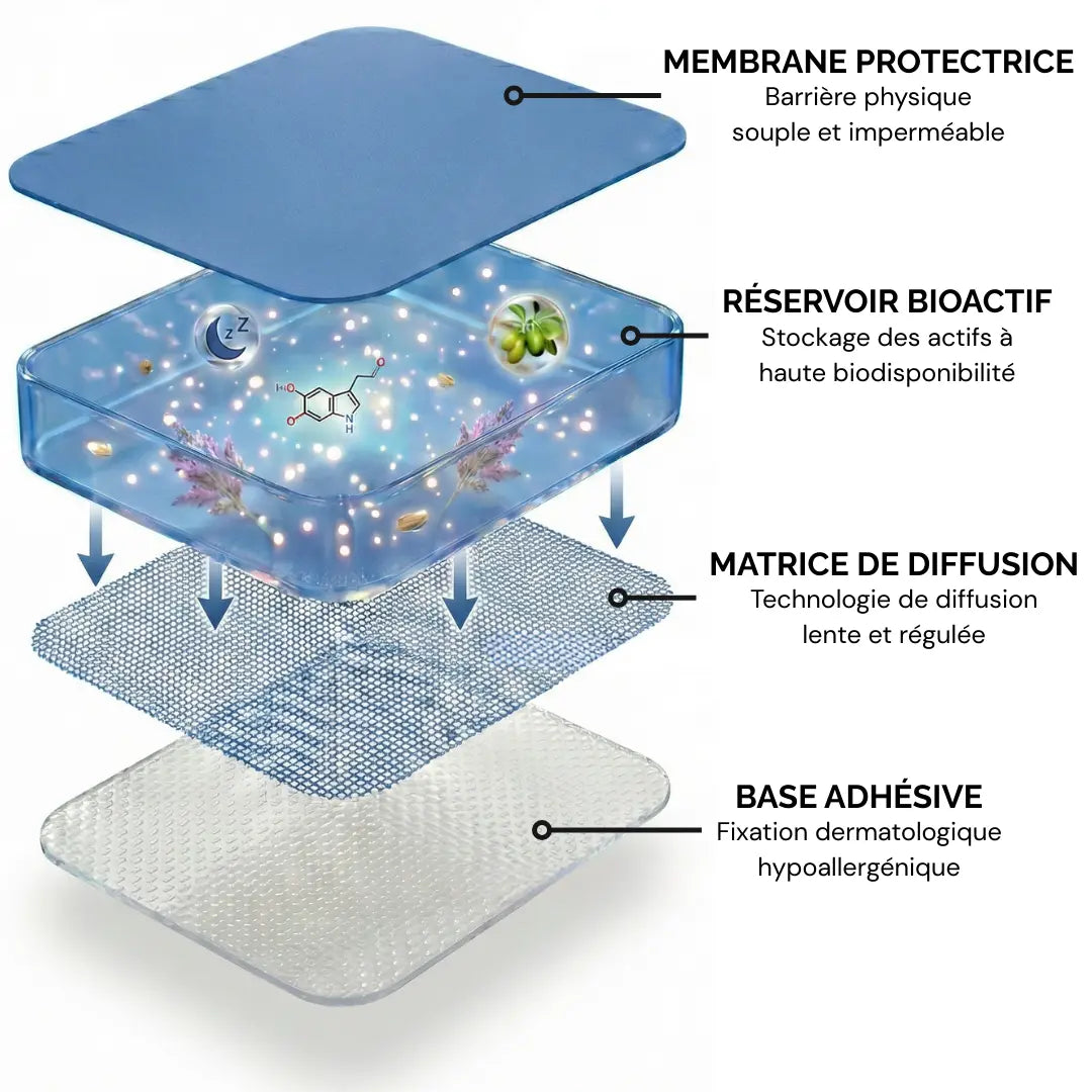 Le Patch Sommeil Caalme ne se contente pas de vous "assommer". Il délivre un signal continu de sommeil à votre organisme. En maintenant un taux de mélatonine constant durant la nuit, il empêche l'organisme de se réactiver prématurément, sécurisant ainsi vos 7 à 8 heures de repos nécessaires.